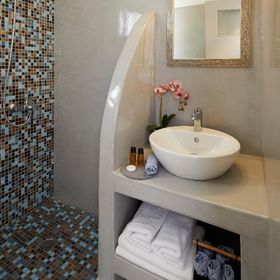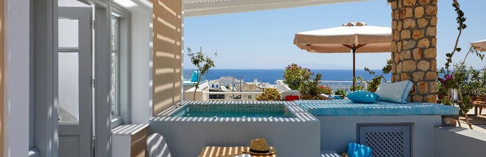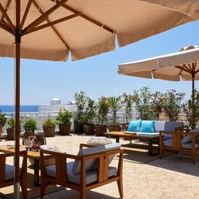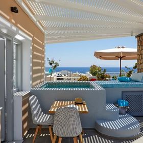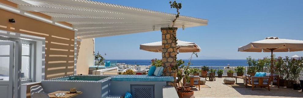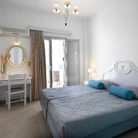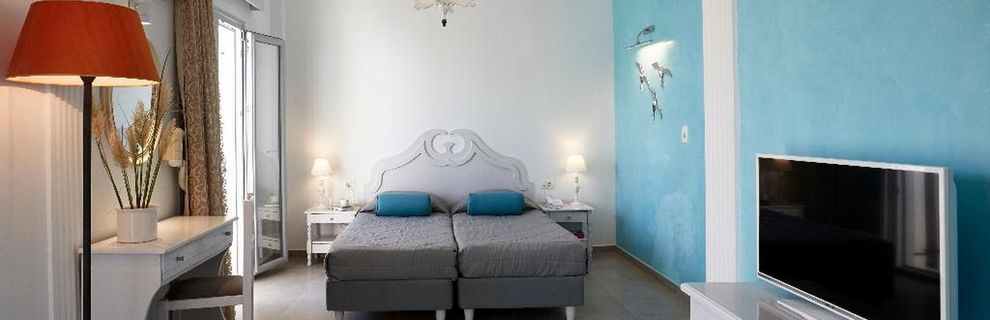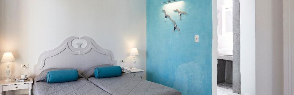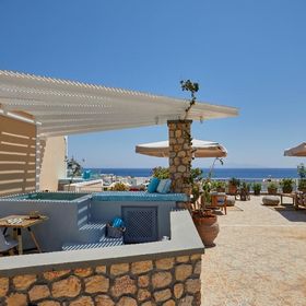 Blue Sea położony jest niemalże w centrum miejscowości Kamari. Do pięknej wulkanicznej plaży i nadmorskiej promenady z licznymi sklepami, tawernami i barami jest około 50 - 100 m. Przystanek autobusowy znajduje się 150 m od hotelu.