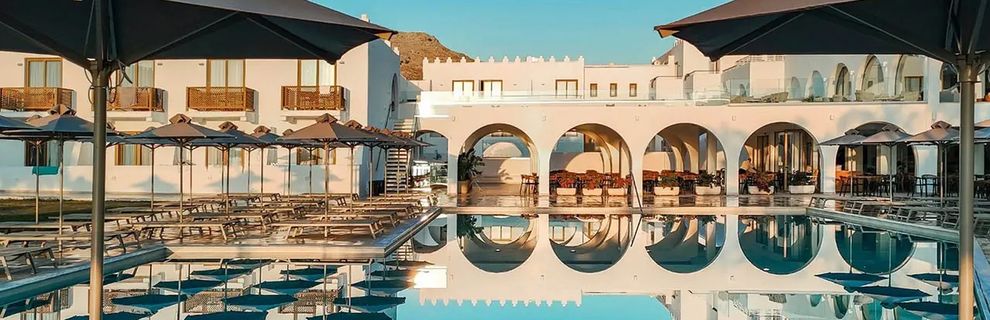 Ten nowoczesny, resort utrzymany w stylu boho został kompleksowo zmodernizowany na sezon 2022 i znajduje się bezpośrednio przy plaży w spokojnej miejscowości Kolymbia. To doskonała propozycja dla rodzin z dziećmi, par oraz grup znajomych, którzy cenią sobie wysoki standard usług oraz doskonałą kuchnię pełną greckich przysmaków. Hotel oferuje 339 pokoi rozmieszczonych w 2 głównych budynkach oraz 3 bocznych. Na terenie ośrodka znajdują się restauracja główna, grecka restauracja a la carte, food court z tematycznymi kącikami oraz 4 bary.