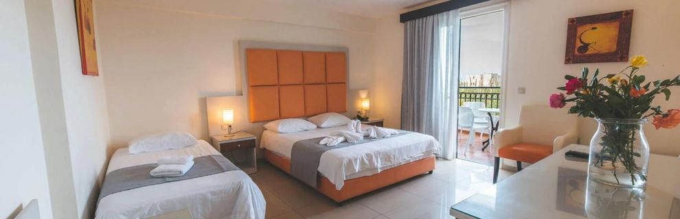Ten rozległy, otoczony zielenią hotel to idealna propozycja dla Gości szukających ciszy i pełnego relaksu z dala od codziennego zgiełku. Kameralna atmosfera, rodzinny klimat i malownicze położenie sprawiają, że każdy dzień wypoczynku nabiera tu wyjątkowego smaku, a Gość może cieszyć się wygodą oraz bogactwem udogodnień, od przestronnych terenów rekreacyjnych po zadbane pokoje. Na rozległym terenie czeka aż 3 baseny ze słodką wodą i bezpłatnymi leżakami oraz parasolami, przy których całe rodziny mogą wypocząć pod śródziemnomorskim słońcem. Pobyt umila również łatwy dostęp do plaży, liczne bary i tawerny w okolicy oraz rodzinne atrakcje.