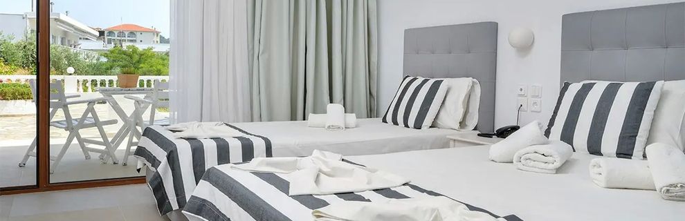 Urokliwy hotel położony tuż przy jednej z najpiękniejszych plaż Chalkidiki, idealny na wypoczynek w greckim klimacie. Po modernizacji wszystkich pokoi na sezon 2024 Gości czeka jeszcze więcej komfortu i relaksu w przytulnej atmosferze. Obiekt oferuje restaurację serwującą lokalne specjały, 2 bary, basen ze słodką wodą i zadbany ogród. Przygotowano bezpłatny parking i szereg atrakcji na miejscu, w tym możliwość wypoczynku na słonecznym tarasie czy orzeźwiającej kąpieli w basenie. Leżaki i parasole przy basenie oraz na plaży są bezpłatne, natomiast bilard i tenis stołowy to usługi płatne.