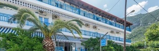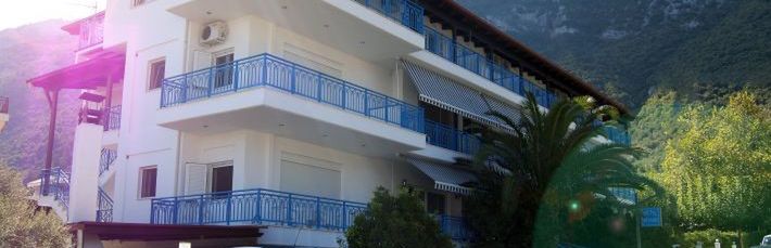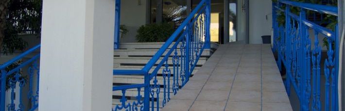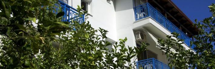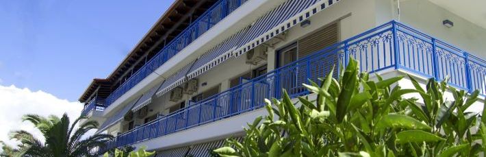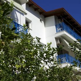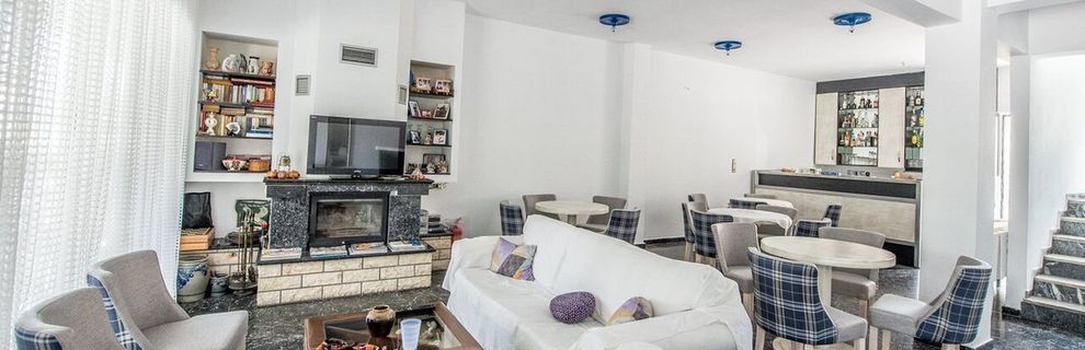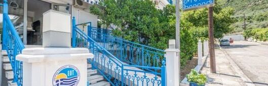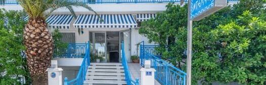 położony w spokojnej okolicy, ok. 300 metrów od centrum miejscowości (sklepy, bary, restauracje, tawerny); poczta ok. 1 km, bankomat ok. 300 metrów.