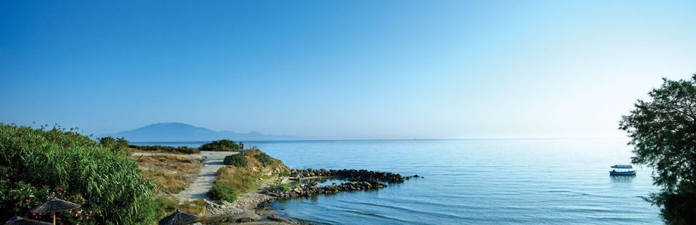 Oferuje dostęp do małej piaszczysto-żwirowej plaży bezpośrednio przy obiekcie. Leżaki i parasole na tej plaży są bezpłatne, natomiast na większej publicznej plaży znajdującej się 1 km od hotelu, dostępne są za dodatkową opłatą.