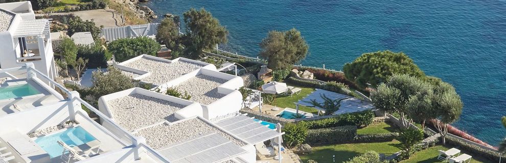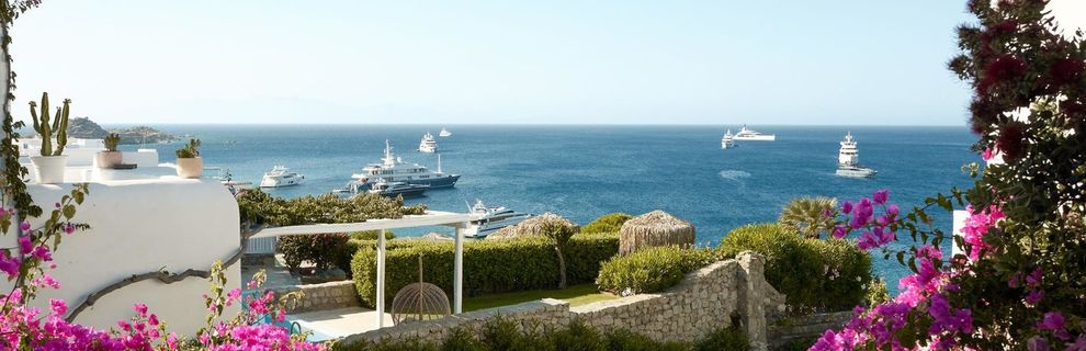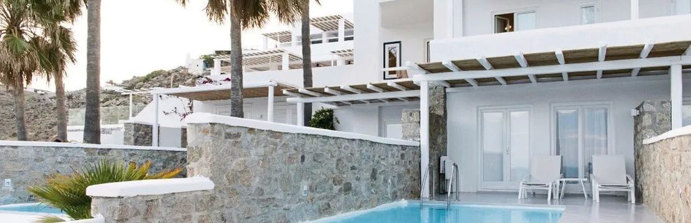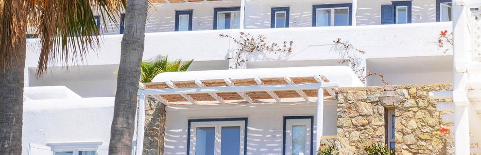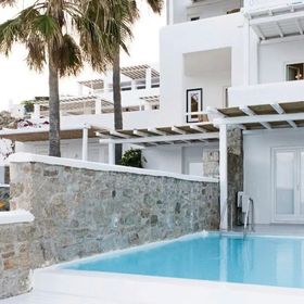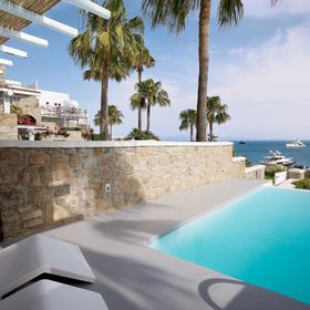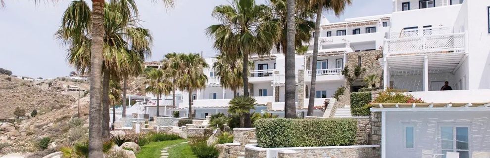 Hotel położony jest w miejscowości Psarrou, na południowej części wyspy Mykonos.
