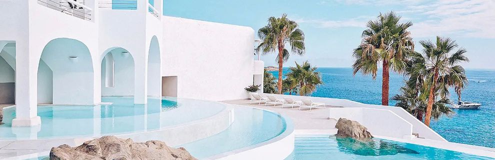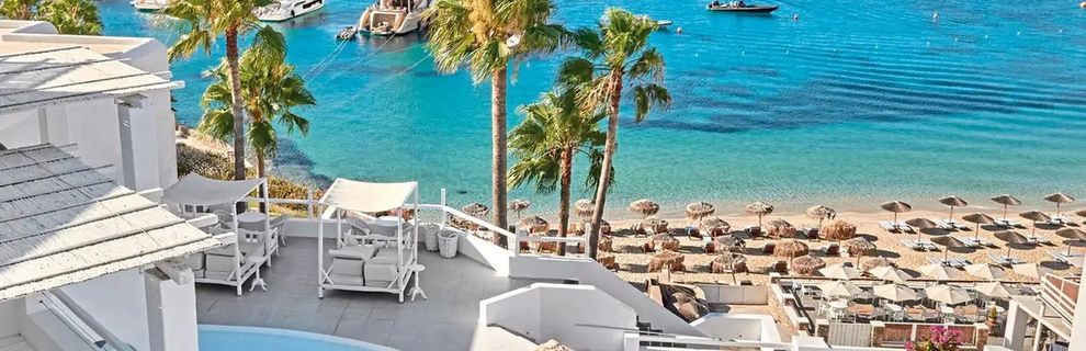 To kwintesencja luksusu i komfortu, oferująca swoim Gościom niezapomniane wakacje na legendarnej wyspie Mykonos. Położony bezpośrednio nad zatoką Psarou, zaledwie kilka kroków od jednej z najpiękniejszych piaszczystych plaż, hotel jest miejscem, gdzie śródziemnomorski urok spotyka się z awangardowym stylem. Bielone budynki kontrastujące z błękitem nieba i lazurem wody tworzą niepowtarzalną atmosferę, a eleganckie pokoje, apartamenty i suity z widokiem na morze lub z prywatnymi basenami oferują oazę relaksu i intymności. Goście mogą rozkoszować się wykwintnymi daniami w restauracjach oferujących przekąski i potrawy kuchni azjatyckiej oraz greckiej, a także odprężyć się przy basenie ze słoną wodą lub korzystać z bogatej oferty spa. Zaledwie 4 km dzieli luksusową enklawę od tętniącego życiem centrum miasta Mykonos, gdzie czekają knajpki, restauracje i lokalne atrakcje.