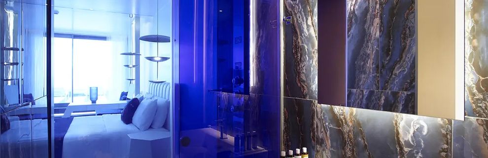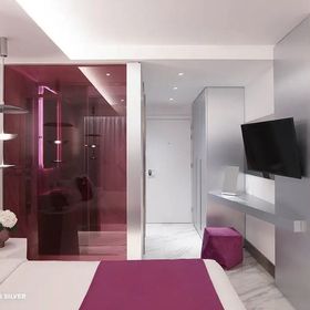łazienka w pokoju jest oddzielona matowym szkłem a nie ścianą od pokoju