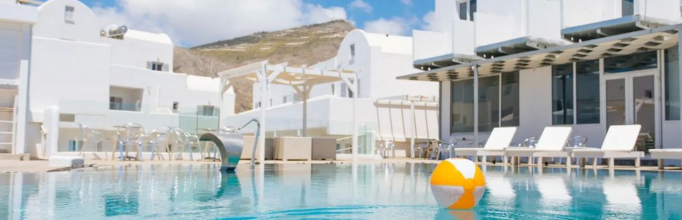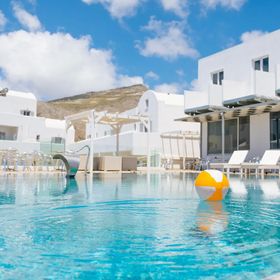 Hotel usytuowany jest w miejscowości Perivolos, jednym z urokliwych i spokojnych kurortów na południu Santorini.