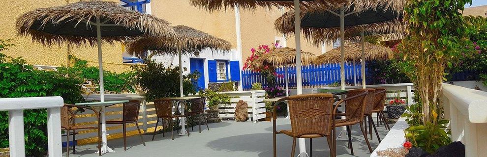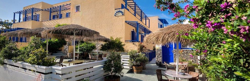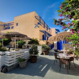 Kamarela Studios znajduje się w Kamari Village, po wschodniej stronie wyspy Santorini. Nieruchomość została wybudowana w tradycyjnym cykladzkim stylu i cieszy się doskonałą lokalizacją 50metrów od popularnej plaży Kamari z czarnym piaskiem. Ponadto w pobliżu znajduje się wiele sklepów, restauracji, kawiarni i barów. W pobliżu hotelu dostępny jest bezpłatny parking publiczny. Kamarela znajduje się również w pobliżu przystanku autobusowego, supermarketów i zaledwie 4km od lotniska Santorini, a port oddalony jest o 10km.