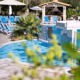 Hotel dysponuje zewnętrznym basenem ze słodką wodą, otoczonym leżakami i parasolami, co stanowi doskonałe miejsce na relaks pod greckim słońcem.