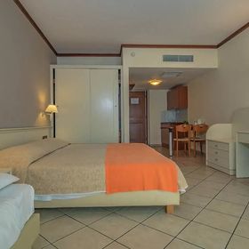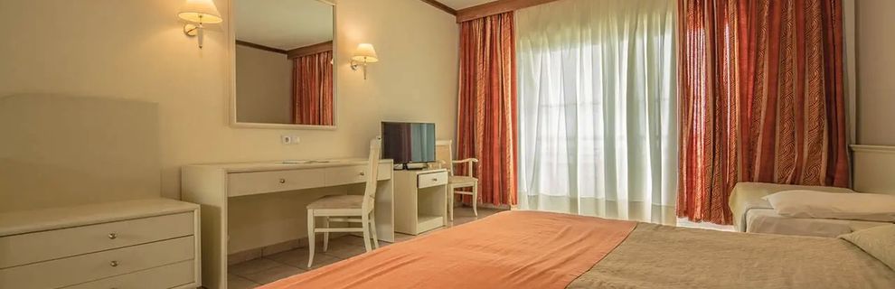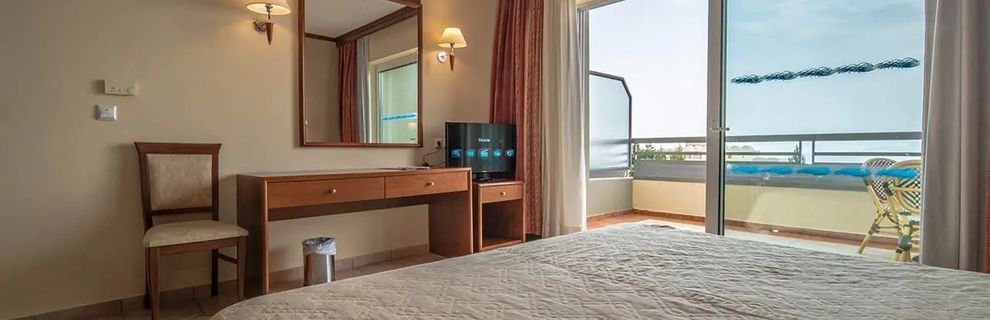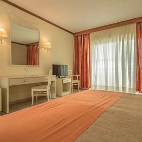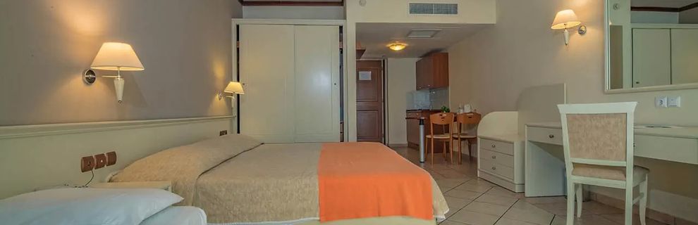 Duży pokój z balonem, u nas akurat z widokiem na morze, z aneksem kuchennym, czajnik lodoka, kuchenka, wanna. Codziennie wymiana ręczników i pościeli, bardzo dobre jedzenie, fajne czyste baseny, 800 m do morza, darmowy busik, który podwozi gości