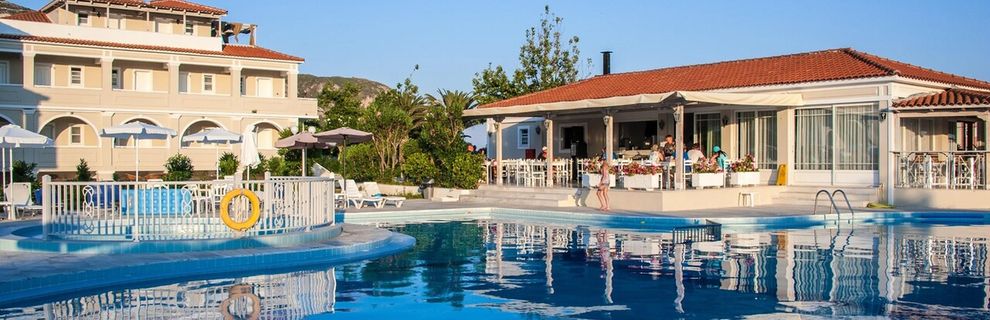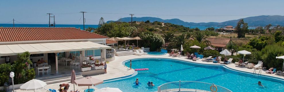 Wyróżniony za swój wyjątkowy standard, rodzinną atmosferę, bajeczne ogrody i autentyczną grecką gościnność. Położony zaledwie 90 m od szerokiej, piaszczystej plaży w Kalamaki na Zakynthos, w otoczeniu palm i drzew oliwnych, jest idealnym miejscem na spokojny wypoczynek lub pełen przygód urlop z dziećmi. Gość może cieszyć się aromatycznymi śniadaniami, wyśmienitymi bufetami i przekąskami o każdej porze dnia, a po dniu pełnym zwiedzania zrelaksować się na leżaku przy dużym basenie lub w jacuzzi pod gołym niebem. Bliskość sklepów, rezerwatu żółwi Caretta Caretta i doskonałe smaki kuchni to gwarancja niezapomnianego wypoczynku.