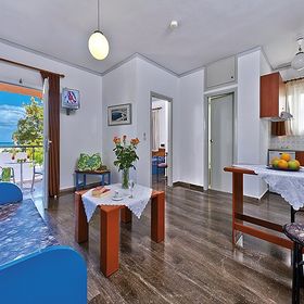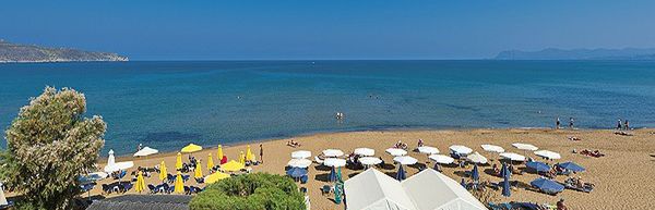 Położony przy publicznej, piaszczysto-żwirowej plaży, gdzie parasole i leżaki dostępne są za dodatkową opłatą.