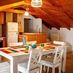 - salon z aneksem kuchennym(czajnik, toster, kuchenka, pralka, mini lodówka) oraz sypialnia