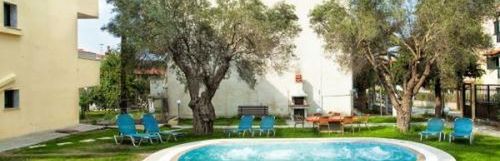 położony jest 300 m od plaży piaszczysto-żwirowej. Miasta położone najbliżej hotelu to Chanioti (4 km) i Kalithea (18 km). Dla Państwa komfortu hotel posiada recepcję i klimatyzację. W 2-piętrowym hotelu personel mówi po angielsku. Odległość od hotelu: lotnisko SKG (95 km). W pobliżu hotelu znajdują się supermarket, postój taksówek, centrum miasta, bary/restauracje i przystanek autobusowy. Hotel posiada parking dla samochodów.