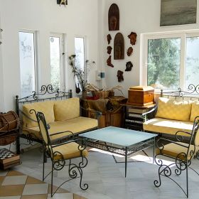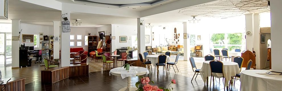 Kameralny, rodzinny trzygwiazdkowy obiekt w niskiej zabudowie, położony przy zatoce Skala Kalloni. Odnowiony w 2010 roku, oferuje 45 pokoi rozmieszczonych w czterech budynkach. Hotel wyróżnia się własnym gospodarstwem rolnym, które dostarcza 80% zapotrzebowania na warzywa serwowane w restauracji. W ogrodzie rosną drzewa owocowe, z których przygotowywane są domowe marmolady. To miejsce szczególnie lubiane przez ornitologów i ekoturystów.