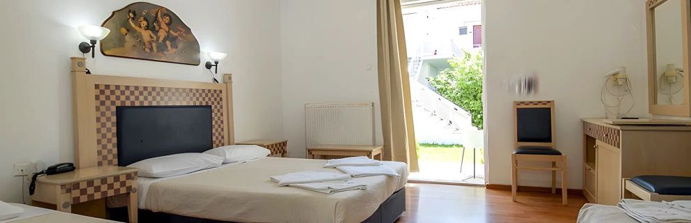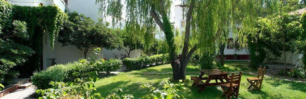 Kameralny, rodzinny trzygwiazdkowy obiekt w niskiej zabudowie, położony przy zatoce Skala Kalloni. Odnowiony w 2010 roku, oferuje 45 pokoi rozmieszczonych w czterech budynkach. Hotel wyróżnia się własnym gospodarstwem rolnym, które dostarcza 80% zapotrzebowania na warzywa serwowane w restauracji. W ogrodzie rosną drzewa owocowe, z których przygotowywane są domowe marmolady. To miejsce szczególnie lubiane przez ornitologów i ekoturystów.