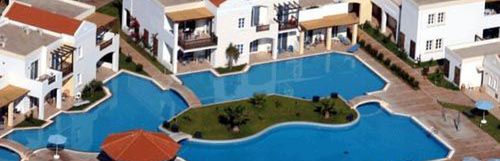 Hotel w stylu greckiej wioski, 1- i 2-piętrowe bungalowy usytuowane w zadbanym ogrodzie, posiada 315 kwater.