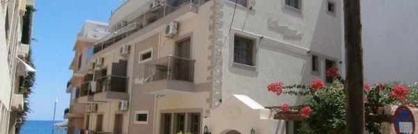 W popularnej miejscowości turystycznej Hersonissos, ok. 25 km od lotniska w Heraklionie. Przy piaszczystej plaży w centrum Hersonissos ok. 30 km od centrum Heraklionu ok. 27 km od lotniska w Heraklionie