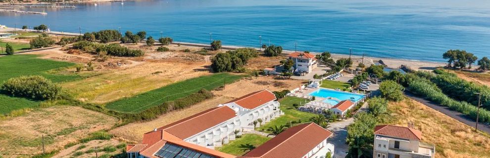 Atrakcyjnie położony, na zachodnim wybrzeżu wyspy Krety; z widokiem na długą plażę, w Kolymbari. Niewielkie miasteczko wypoczynkowe. Niewielki port; ok. 1,5km, Platanias z licznymi barami i tawernami: ok. 11km, Chania ze Starówką: ok. 23km. Muzeum dzikich roslin Krety: ok. 1,5km, najpiękniejsza z plaż w Grecji z Laguną Balos i różowym piaskiem. ok. 31km, plaża znana z filmu "Grek Zorba" ze szmaragdową wodą tj. Golden Coast Beach: ok. 38km, Wąwóz Samaria: ok. 68km. Port lotniczy w Cahnii oddalony o ok. 42km.