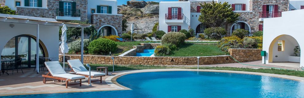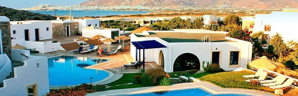 w miejscowości Stelida, ok. 3 km od centrum NAKSOS; ok. 110 km od portu lotniczego w Santorini, ok. 5 km od portu w Naksos (transfer autokarem i promem); przystanek autobusowy przy hotelu (ok. 1,6 EUR/Naksos).