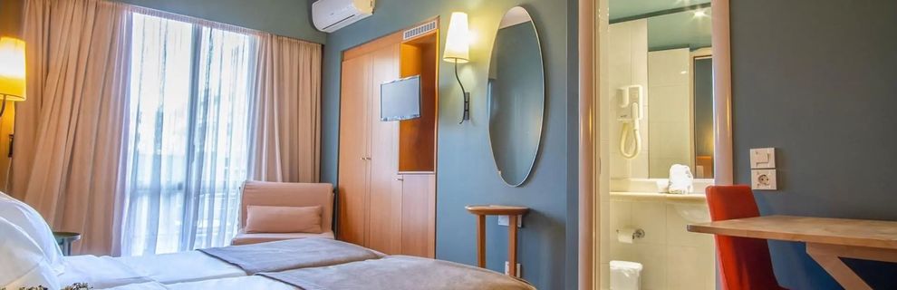 To perła w sercu Heraklionu, oferująca Gościom komfort i wygodę w bliskim sąsiedztwie najważniejszych atrakcji miasta. Ten elegancki budynek mieści 73 przestronne pokoje, które łączą w sobie nowoczesność z przytulną atmosferą. Dzięki swojej lokalizacji na jednym z historycznych placów - Kornarou, Goście mogą szybko dotrzeć do takich miejsc jak Katedra Św. Manesa, Port Wenecki czy Pałac Knossos. Z tarasu na dachu rozpościera się przepiękny widok na tętniące życiem miasto. Wyjątkowe usługi i udogodnienia, takie jak całodobowa recepcja, bar kawowy, restauracja serwująca lokalne specjały, wypożyczalnia samochodów, a także bezpłatne Wi-Fi, czynią pobyt w hotelu niezwykle atrakcyjnym.