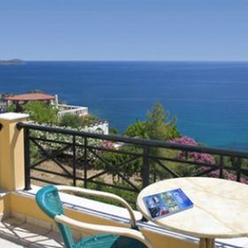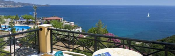 centralna część północnego wybrzeża Krety, na wzgórzu, 2 km od centrum Agia Pelagia, ok. 15 km od portu lotniczego w Heraklionie, 100 km od portu lotniczego w Chanii.