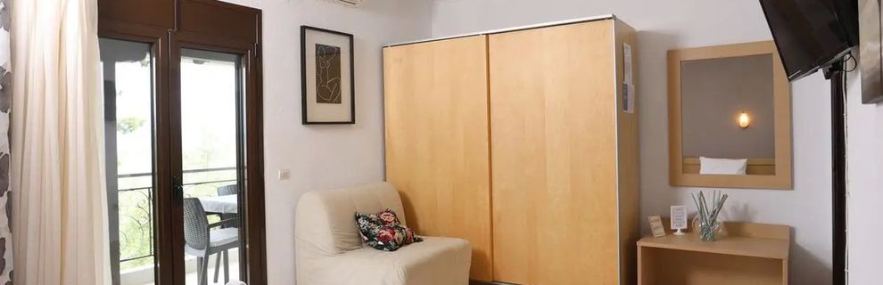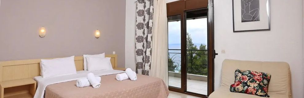 Kameralny, rodzinnie prowadzony kompleks położony na wzgórzu z malowniczym widokiem na morze, otoczony gajami oliwnymi, gwarantujący spokojną atmosferę i komfortowy wypoczynek z dala od zgiełku. To idealne miejsce dla osób szukających bliskości natury i autentycznego relaksu na greckiej Riwierze.