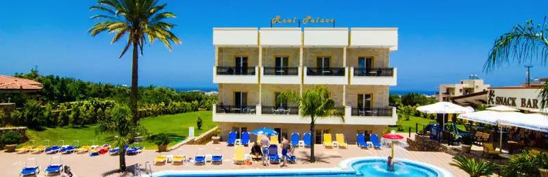 To kameralny hotel na wzgórzu w Malii, który zachwyca Gościa spokojem śródziemnomorskiego ogrodu, panoramicznymi widokami na morze i góry oraz przyjazną, rodzinną atmosferą. Obiekt doceniony za standard i kameralność oferuje komfortowe pokoje z aneksem kuchennym, balkonem lub patio oraz dostępem do bezpłatnego Wi-Fi w częściach ogólnodostępnych. Gość może wypoczywać na tarasie słonecznym przy basenie ze słodką wodą lub skosztować przekąsek w barze przy basenie. W hotelu czeka restauracja, lobby, pokój gier, wypożyczalnia rowerów i samochodów, kantor oraz bezpłatny parking. Real Palace Studios to miejsce, w którym Gość znajdzie wytchnienie po całodziennych wyprawach, zrelaksuje się w ogrodzie i cieszyć się będzie prawdziwie grecką gościnnością tuż przy malowniczym Starym Mieście.