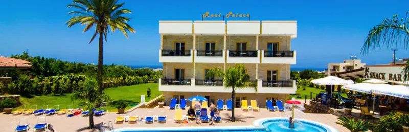 To kameralny hotel na wzgórzu w Malii, który zachwyca Gościa spokojem śródziemnomorskiego ogrodu, panoramicznymi widokami na morze i góry oraz przyjazną, rodzinną atmosferą. Obiekt doceniony za standard i kameralność oferuje komfortowe pokoje z aneksem kuchennym, balkonem lub patio oraz dostępem do bezpłatnego Wi-Fi w częściach ogólnodostępnych. Gość może wypoczywać na tarasie słonecznym przy basenie ze słodką wodą lub skosztować przekąsek w barze przy basenie. W hotelu czeka restauracja, lobby, pokój gier, wypożyczalnia rowerów i samochodów, kantor oraz bezpłatny parking. Real Palace Studios to miejsce, w którym Gość znajdzie wytchnienie po całodziennych wyprawach, zrelaksuje się w ogrodzie i cieszyć się będzie prawdziwie grecką gościnnością tuż przy malowniczym Starym Mieście.