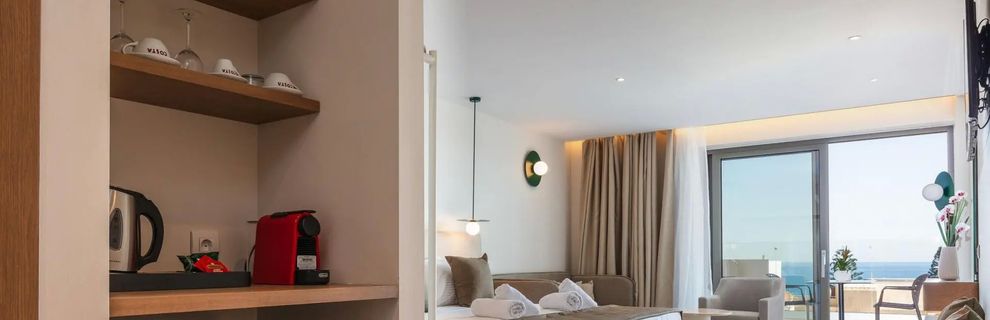 Wszystkie pokoje wyposażone są w klimatyzację, bezpłatny dostęp do Wi-Fi, minibar/lodówkę, sejf, suszarkę do włosów oraz zestaw do parzenia kawy/herbaty. Każdy pokój posiada balkon lub taras z pięknym widokiem na okolicę.