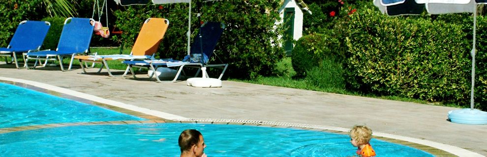 - leżaki, parasole słoneczne przy basenie,