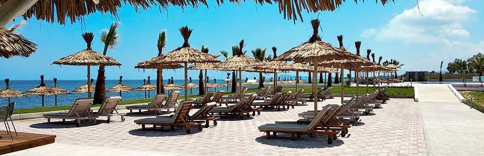 Znajduje się obok piaszczysto-kamienistej, publicznej plaży. Goście mogą korzystać z leżaków i parasoli bezpłatnie. Rekomendowane jest używanie obuwia ochronnego z uwagi na kamieniste dno.