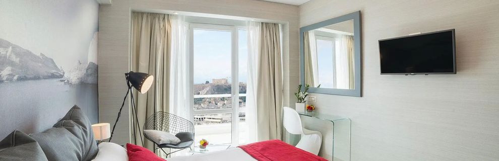 To luksusowy hotel w samym sercu Aten, który zachęca Gościa, by poczuł wyjątkowy klimat stolicy Grecji z wysokości eleganckiego dachu z panoramicznym widokiem na Akropol i tętniące życiem miasto. Obiekt został nagrodzony za obsługę i szeroką gamę udogodnień, od designerskich pokoi z balkonem, indywidualną klimatyzacją oraz bezpłatnym Wi-Fi, po eleganckie lobby z całodobową recepcją, 2 znakomite restauracje i basen na dachu, który przyciąga miłośników życia nocnego i relaksu w stolicy. Gość może rozpoczynać dzień śniadaniem na tarasie, cieszyć się wystrojem wnętrz inspirowanym sztuką i architekturą Aten, a wieczorem rozkoszować się autorskimi menu w hotelowej restauracji czy złapać oddech przy basenie.