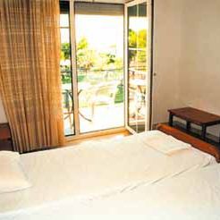 7 dwuosobowych apartamentów z możliwością jednej dostawki. Klimatyzacja, TV, kuchenka elektryczna, lodówka, naczynia kuchenne, balkon. Łazienka z prysznicem, WC.