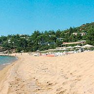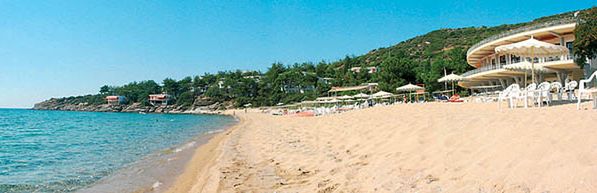 Nad jedną z piękniejszych piaszczystych plaż, która odznaczona została Błękitną Flagą za nieskazitelną czystość; budynki hotelu położone tarasowo, na zboczu góry pośród drzew piniowych; 6 km od centrum Kavali; w pobliżu znajduje się przystanek autobusowy ze stałymi połączeniami z Kavalą.