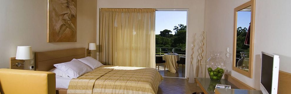 położony tuż obok lokalnego rezerwatu przyrody i jeziora Kalogria. Od piaszczystej plaży obiekt dzieli zaledwie 500 m, blisko stąd również do sklepów, tawern i restauracji. Możecie wybrać się stąd także na wycieczkę po malowniczych miejscowościach znajdujących się w okolicy. Na terenie hotelu goście odpoczną przy basenie albo w zadbanym ogrodzie. Dla najmłodszych przygotowano osobny brodzik.