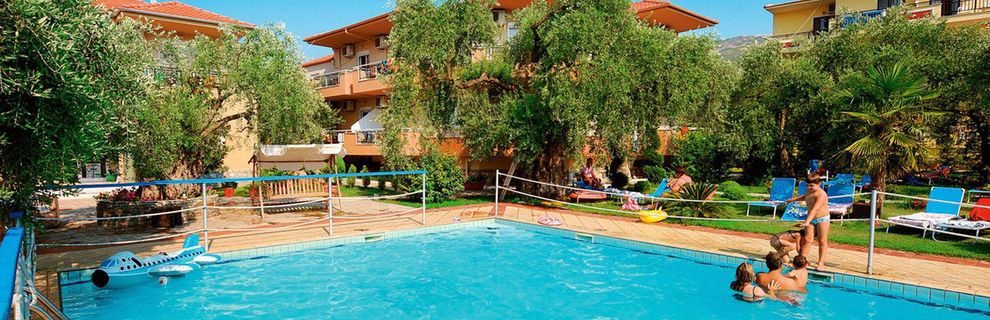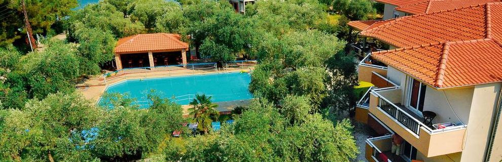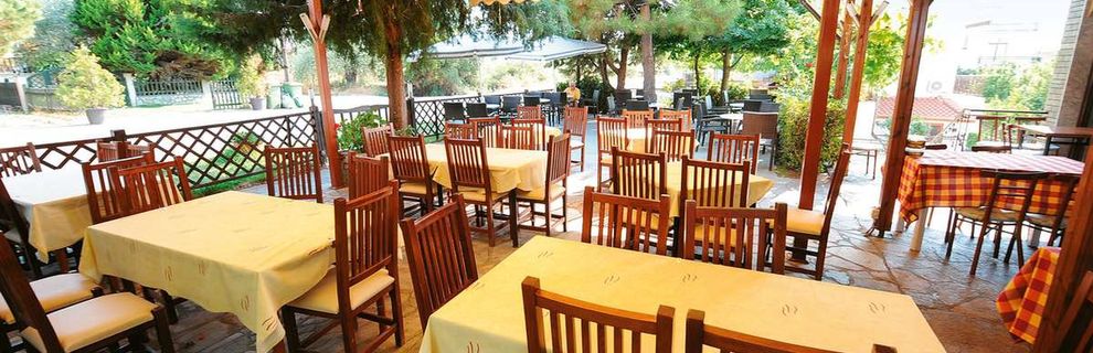 Kwatery do wynajęcia na tzw. wczasy pod gruszą. Mieszkaliśmy w części przy basenie. Pokoje duże typu apartament: taras, pokój sypialny + oddzielona drzwiami duża część z sofą i stolikiem oraz aneksem kuchennym. Minus! Kuchenka elektryczna, nie ma mikrofalówki, kuchenka grzeje się niemiłosiernie wolno i są tylko 2 płyty, więc jakieś duże gotowanie niemożliwe. Łazienki bardzo proste. Sprzątanie takie sobie, bo robi to chyba córka właścicieli, młoda dziewczyna, ale w sumie jest czysto. Śniadanie bardzo proste: chleb, 2 rodzaje płatków, mleko, dżem, miód, masło, wędlina, ser, kawa/herbata, jajko na zimno, sokopodobny napój z koncentratu. I to tyle. Nie ma wody na śniadanie. Przy \"hotelu\" tawerna z super pysznym świeżutkim greckim jedzeniem. Tatziki 2 EUR, frytki EUR, ale duża bardzo porcja, pizza ok. 6 EUR i inne lokalne przysmaki. Lodówka sprawna. 2 małe sklepiki w pieszej odległości dostarczają w zasadzie wszystkiego co potrzebne do szczęścia. W tym lokalne - z Thassos a dokładnie Prinos - miody (pyszne!), oliwa, wszelkie alkohole od win, bardzo dobrych, poprzez retsinę, metaxę i inne, przysmaki typu greckie przekąski (gołąbki z liśćmi wina, fasolka w pomidorach i inne). Oliwki - drzewa - gigantyczne. Plaże 2 - jedna zaraz przy hotelu, kamienista, jeżowce, ale bardzo malownicza. Druga trochę dalej, większa, bez jeżowców. Widoki super. Miejscowość żadna. Ale ogólne wrażenie bardzo dobre. Takie wakacje eko. Jedzenie świeżutkie greckie dostępne bez problemu, basen jest. Pojechałam z dziećmi. Po zakupieniu wycieczki trochę się załamałam, że będzie tragedia, bo nic tu nie ma. A tymczasem dzieci zachwycone. W miejscowości głównie turyści z Grecji, trochę z krajów bałkańskich. Super bezpiecznie. Takie tanie wakacje w kwaterach nad morzem dla niewymagających. Nie polecam nastolatkom ani młodym szukającym rozrywki - dyskotek brak. Wycieczki u rezydenta drogie, bardzo drogie - od 30-50 EUR, dzieci niewielka zniżka, ale jeździ autobus do Thassos, Theologos, Limenas.