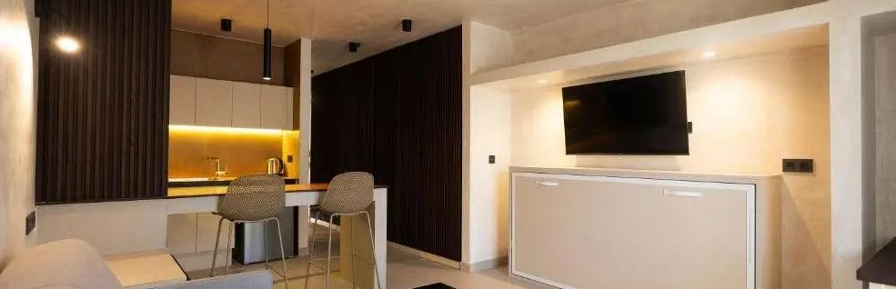 Oferuje 16 pokoi typu studio, 38 apartamentów z jedną sypialnią i 40 apartamentów z dwoma sypialniami. Studia dwuosobowe bez możliwości dostawki, apartamenty dwuosobowe z możliwością jednej dostawki. Na wyposażeniu łazienki oraz balkony. Apartamenty obejmują część wypoczynkową z sofą i wentylatorem oraz aneksem kuchennym. Za dodatkową opłatą można korzystać z telewizora i sejfu.