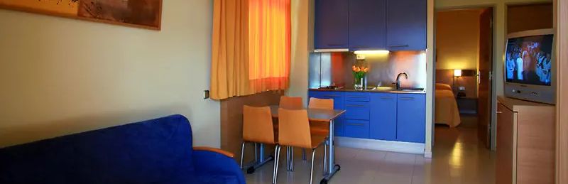 Gość, który wybierze pobyt w tym kompleksie apartamentowym, zyskuje niezależność i komfort tuż przy plaży i blisko centrum Pineda de Mar. Apartamenty z klimatyzacją i aneksem kuchennym idealnie sprawdzają się dla rodzin i grup przyjaciół. Dodatkowym atutem jest dostęp do pełnej infrastruktury rozrywkowej i sportowej sąsiedniego hotelu Aqua Promenade, zaledwie 25 metrów od apartamentów. Gość może także korzystać z kawiarni i snack baru na miejscu.