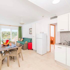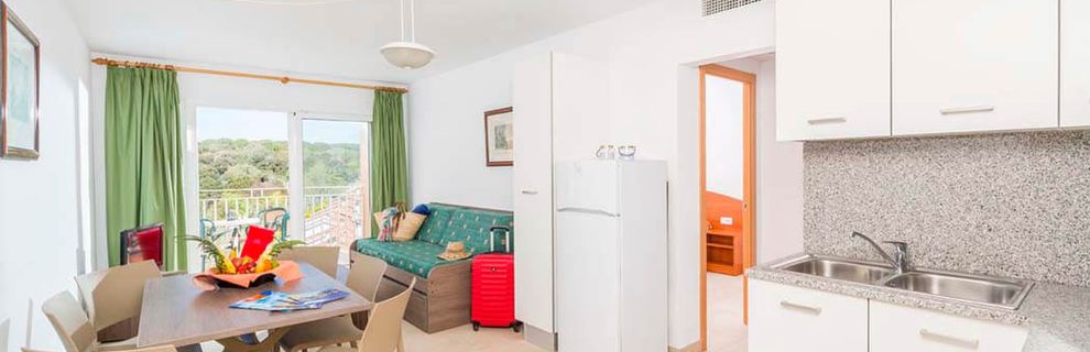 Liczba apartamentów: 58 - wygodnie wyposażone z łazienką (WC, prysznic/wanna), aneks kuchenny (lodówka, kuchenka elektryczna, podstawowe sztućce i naczynia), TV i sejf (lokalne opłaty), telefon, balkon. Studia 2-4 os.: 1 pokój z częścią sypialną dla 2 os. oraz częścią wypoczynkową (rozkładana sofa dla 1-2 os), aneks kuchenny, łazienka. Apartamenty 4-6 os.: 2 sypialnie 2-osobowe, pokój dzienny z częścią wypoczynkową (rozkładana sofa dla 1-2 os), aneks kuchenny, łazienka. Apartamenty 6-8 os.: 3 sypialnie 2-osobowe, pokój dzienny z częścią wypoczynkową (rozkładana sofa dla 1-2 os), aneks kuchenny, 2 łazienki.
