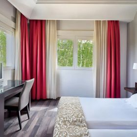 Idealne miejsce dla Gości, którzy pragną poczuć wyjątkowy klimat Granady i być o krok od słynnej Alhambry. Zlokalizowany w eleganckim, utrzymanym w tradycyjnym stylu budynku, emanuje kameralną atmosferą i pozwala w pełni zanurzyć się w bogactwie lokalnej kultury. Po całym dniu odkrywania uroków miasta można tu zrelaksować się w przytulnej sali śniadaniowej lub barze, a komfortowy odpoczynek zapewnia nie tylko funkcjonalne wyposażenie, ale i serdeczna obsługa. Gościom sprzyja dogodna komunikacja miejska oraz bliskość najważniejszych atrakcji Granady. Na terenie hotelu dostępny jest bezpłatny Internet Wi-Fi oraz całodobowa recepcja i przechowalnia bagażu.