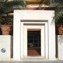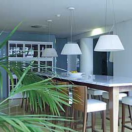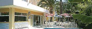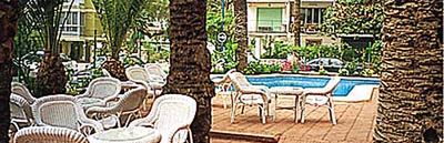 Nowoczesny hol powitalny, salon z TV, jadalnia, winda, parking hotelowy. Słoneczny taras z palmami, leżakami i obsługą z baru.