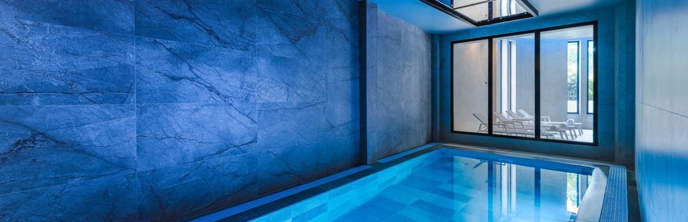 Podgrzewany zimą basen z leżakami, tarasem słonecznym oraz bezpośrednim wyjściem na teren ogrodu.