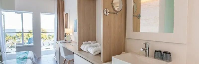 Do dyspozycji Gości 2 baseny z widokiem na morze (słodka woda; 1 podgrzewany) oraz duży taras słoneczny z bezpłatnymi leżakami i parasolami. Wybrane pokoje typu swim-up (z bezpośrednim dostępem do basenu).