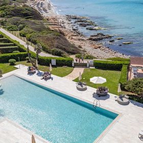 Gość ma do dyspozycji basen zewnętrzny w ogrodzie z widokiem na plażę oraz kryty, podgrzewany basen.