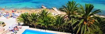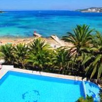 malownicza zatoka San Antonio, wśród palmowej roślinności, nad brzegiem morza oraz w sąsiedztwie piaszczystej plaży; w pobliżu liczne butiki, restauracje i bary; w zasięgu spaceru San Antonio (ok. 2 km) z bogatą ofertą dziennych i nocnych rozrywek; w pobliżu hotelu przystanek komunikacji miejskiej