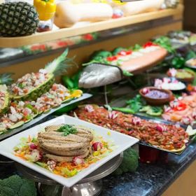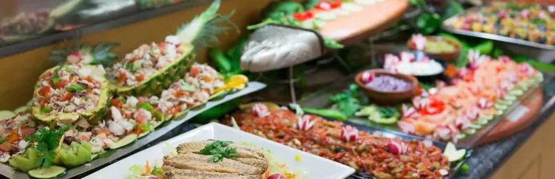 Zazwyczaj zawiera śniadanie, obiad/lunch i kolację oraz przekąski między posiłkami. Napoje bezalkoholowe i lokalne alkohole są dostępne w wyznaczonych godzinach