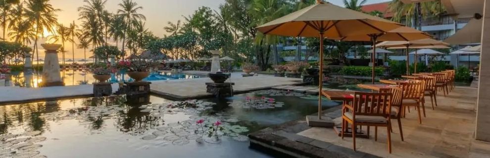 Ekskluzywny hotel, położony bezpośrednio przy jednej z najpiękniejszych plaż wyspy - Jimbaran lub w luksusowej części Tanjung Benoa tuż obok strefy hotelowej Nusa Dua. Otoczony tropikalnym ogrodem z alejkami i stawami, oferuje swoim Gościom eleganckie, przestronne pokoje i apartamenty z widokiem na ogród, basen lub ocean. W hotelu znajdują się cztery lagunowe baseny, restauracje i bary serwujące kuchnię z różnych stron świata, rozbudowane centrum spa oraz nowoczesne centrum fitness. Wielbiciele aktywności skorzystają z bogatej oferty sportów wodnych, a rodziny docenią liczne udogodnienia dla dzieci, klub i animacje. Profesjonalna obsługa, szeroka gama usług i mnogość atrakcji sprawiają, że jest to idealne miejsce zarówno na romantyczny wyjazd, jak i rodzinne wakacje lub podróż służbową.