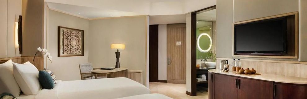 Pokój typu Deluxe (45 m2, sypialnia, widok na ogród, częściowy lub bezpośredni na morze), pokój typu Deluxe Lagoon (45 m2, sypialnia, widok na basen, bezpośredni dostęp do basenu), Deluxe Family (90 m2, 2 sypialnie, 2 łazienki, widok na ogród, basen lub morze), pokoje Resort Suite (90 m2, sypialnia, salon wypoczynkowy z częścią jadalną, widok na morze). Wszystkie wyposażone są w indywidualne klimatyzacje, łazienki (wanna, prysznic, suszarka do włosów), zestaw do kawy herbaty, mini bar, telefon, TV sat, sejf, Wi - Fi (bezpłatne), żelazko i deska do prasowania.