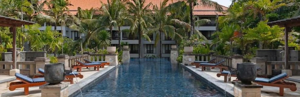 Hotel położony jest w południowej części wyspy Bali, bezpośrednio przy pięknej plaży Jimbaran (serwis plażowy bezpłatny). Oddalony 15 min od lotniska i 25 min od miasta Denpasar.