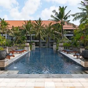 Hotel położony jest w południowej części wyspy Bali, bezpośrednio przy pięknej plaży Jimbaran (serwis plażowy bezpłatny). Oddalony 15 min od lotniska i 25 min od miasta Denpasar.